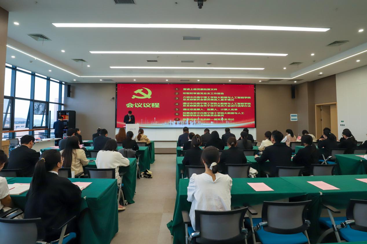 为深入贯彻落实新时代党的建设总要求以及新时代党的组织路线,进一步强化基层党组织标准化与规范化建设,依据《中国共产党章程》《中国共产党基层组织选举工作条例》《中国共产党普通高等学校基层组织工作条例》等相关规定,并经上级党委批准,中共大数据与人工智能学院总支部委员会于2025年11月18日在图书馆618教室召开党员大会。本次大会旨在选举产生总支部委员会委员以及新一届党总支书记,大会由大数据与人工智能学院梁业武同志主持,学校党委组织部赵树耀同志和学院全体党员到场参会。