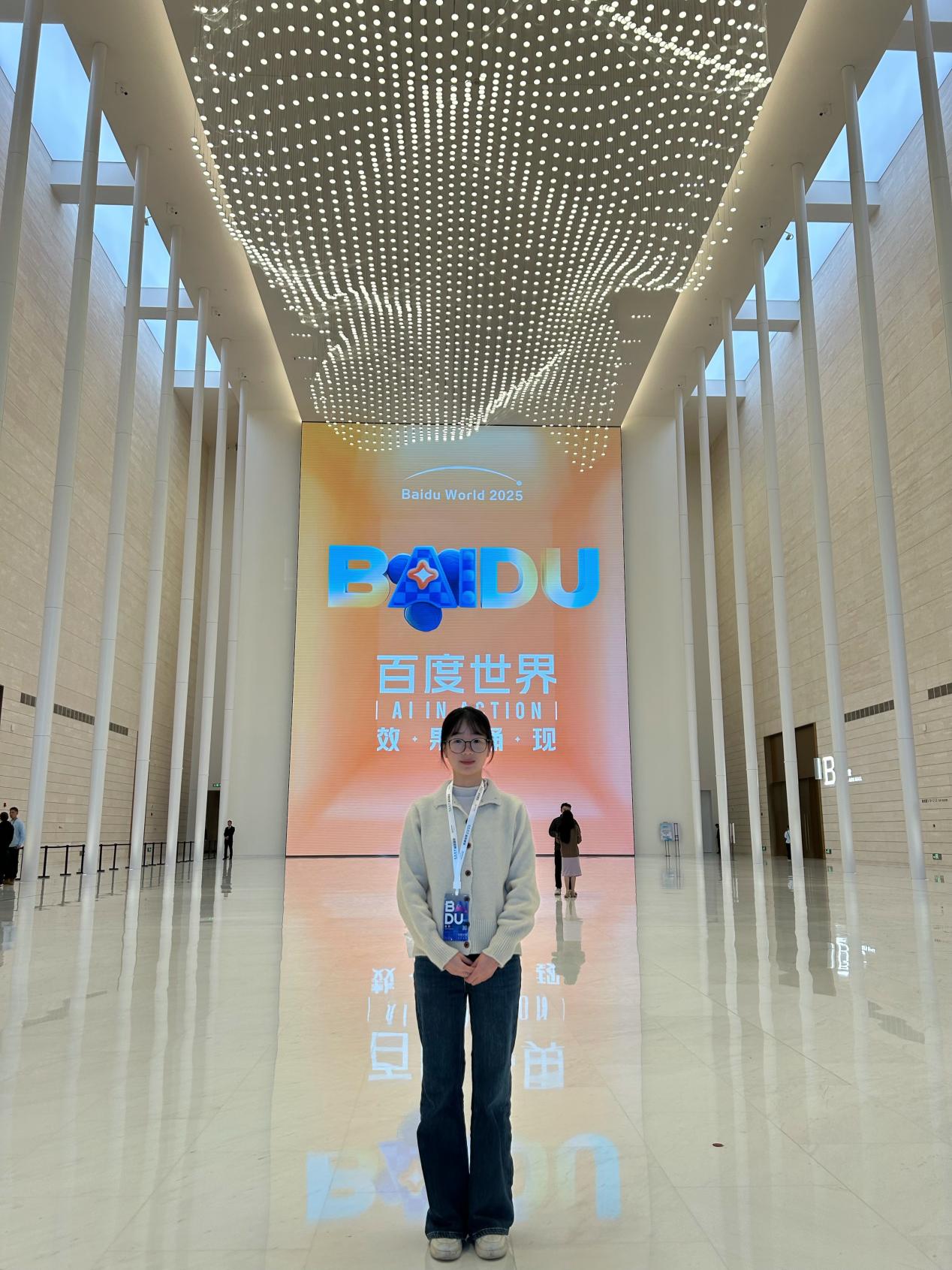 2025年11月13日,以“效果涌现”为主题的百度世界2025大会在北京国家会议中心隆重召开。作为中国人工智能领域的年度盛会,本届大会聚焦国产芯片突破、大模型升级、AI应用创新及全球化布局,吸引了全球科技界与产业界的目光。为精准把握行业技术趋势、深化校企协同育人,南宁理工学院新E代数智未来产业学院选派卢莉丹老师参会,近距离感受AI技术革新浪潮,为大数据与人工智能学院人才培养与产业对接汲取前沿经验。