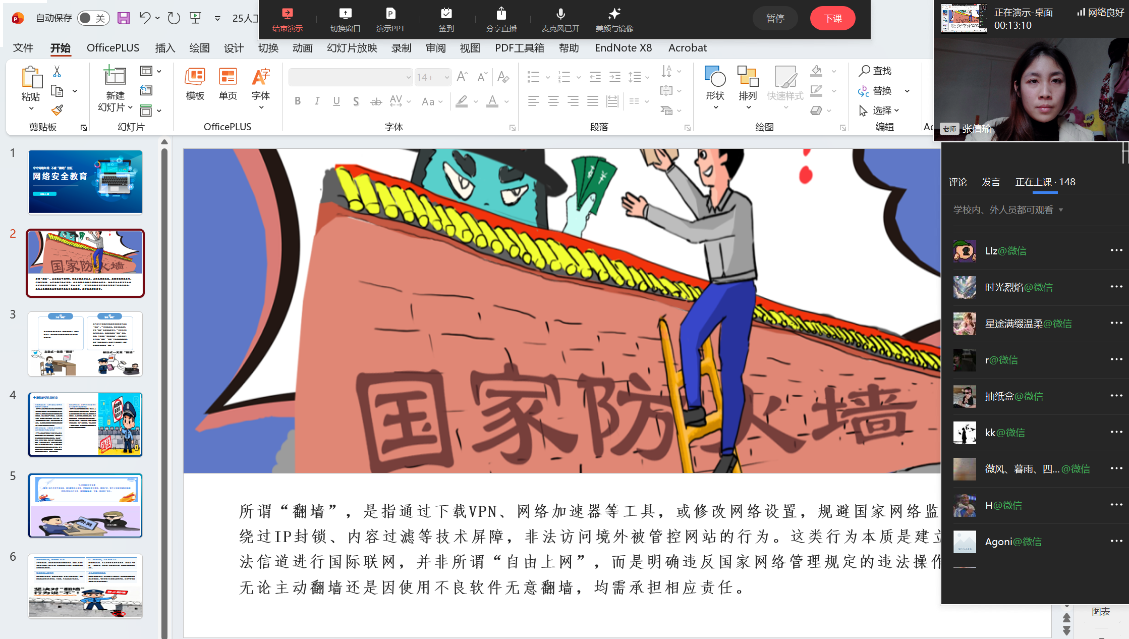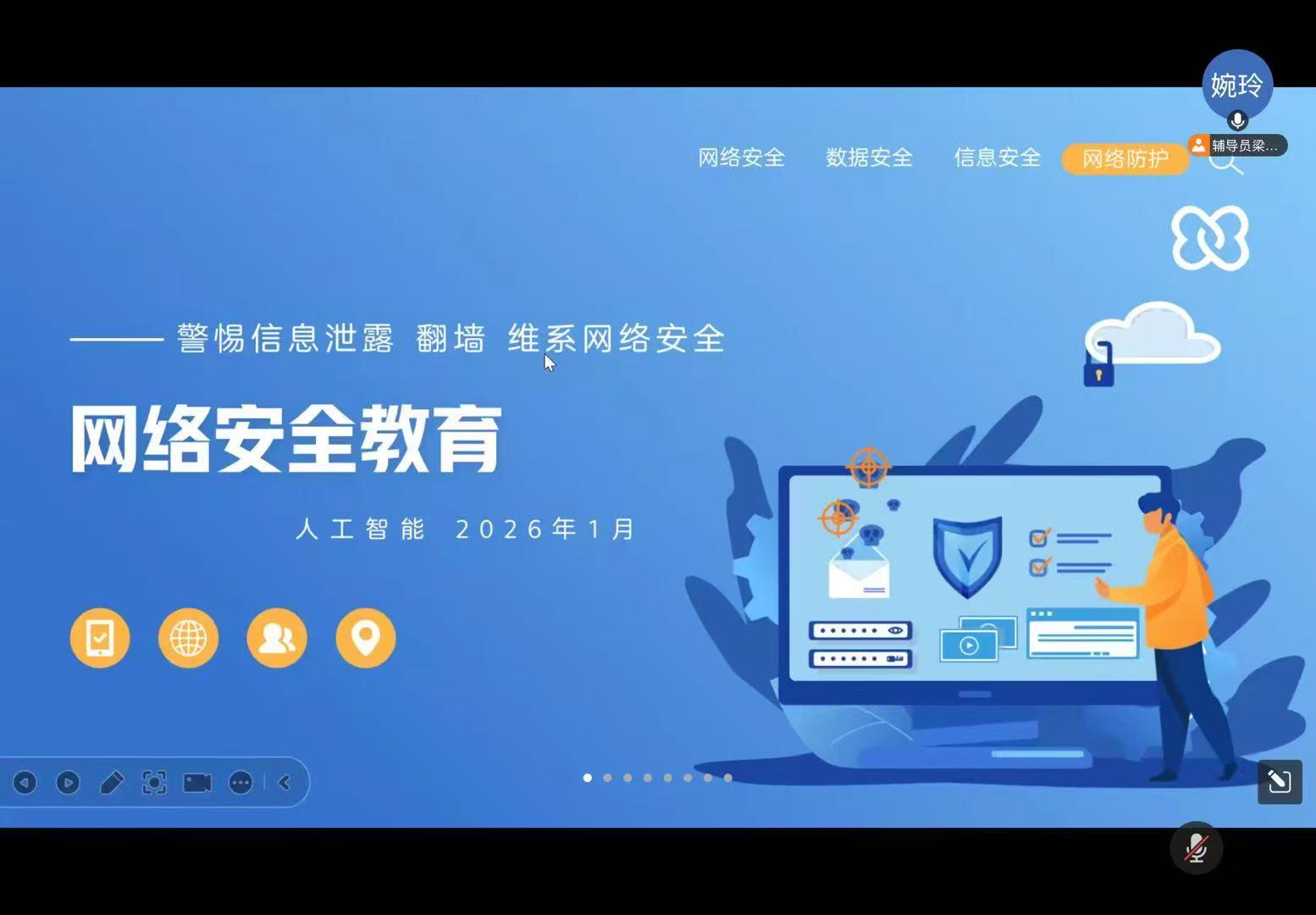 为进一步强化学生网络安全意识,引导学生自觉遵守网络安全法律法规,杜绝网络翻墙等违规违法行为,近日,我院各辅导员依托线上平台,陆续组织开展网络安全主题教育班会,为全体学生送上一堂堂生动的 “云端安全课”。