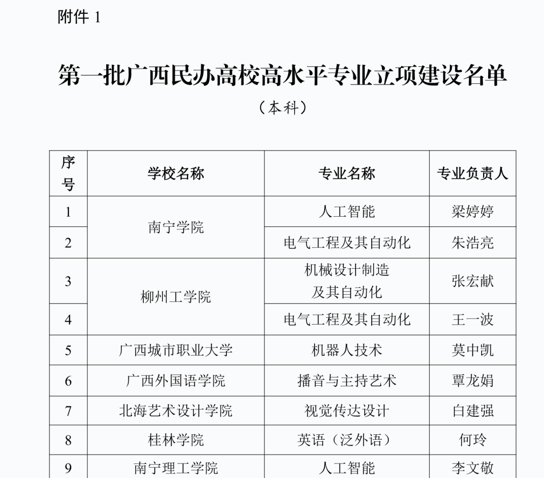 近日,广西壮族自治区教育厅发布《自治区教育厅关于开展第一批广西民办高校高水平专业建设项目申报工作的通知》,我院人工智能专业成功入选首批“广西民办高校高水平专业建设项目”,实现了我院在自治区高水平专业建设领域的新突破。